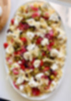 Ditalini Pasta Salad boasts al dente pasta mingling with torn burrata, marinated artichoke hearts, Castelvetrano olives, pickled red onions, and a medley of Mediterranean delights. Shaved Parmesan and fresh dill crown this culinary symphony, all harmonized by a zesty Dijon Vinaigrette.